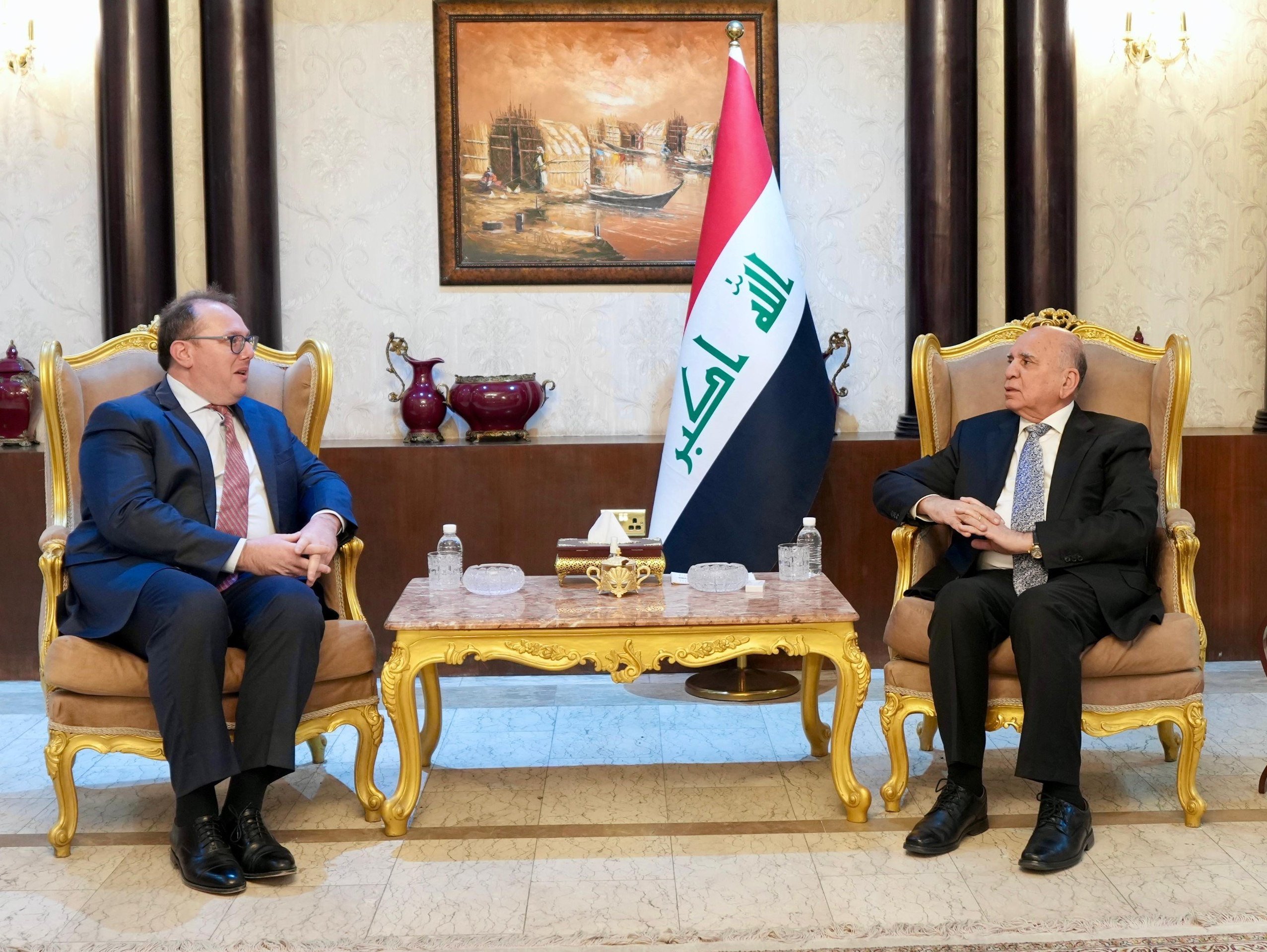 ناقش نائب رئيس مجلس الوزراء ووزير الخارجية فؤاد حسين، اليوم الخميس، مع القائم بأعمال السفارة الأميركية لدى العراق، السفير جوشوا هاريس، آخر التطورات الأمنية في المنطقة، ولا سيّما التوترات الأخيرة في مدينة حلب.